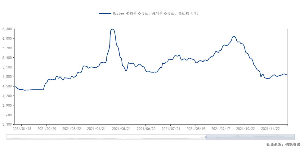 2021年螺紋鋼現(xiàn)貨價格走勢(數(shù)據(jù)來源:鋼聯(lián)數(shù)據(jù))