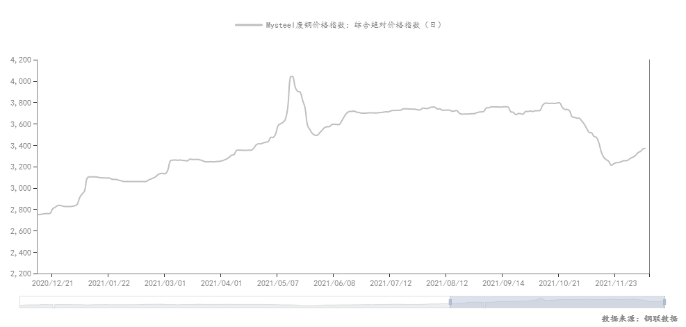 2021年廢鋼價格走勢(數(shù)據(jù)來源:鋼聯(lián)數(shù)據(jù))