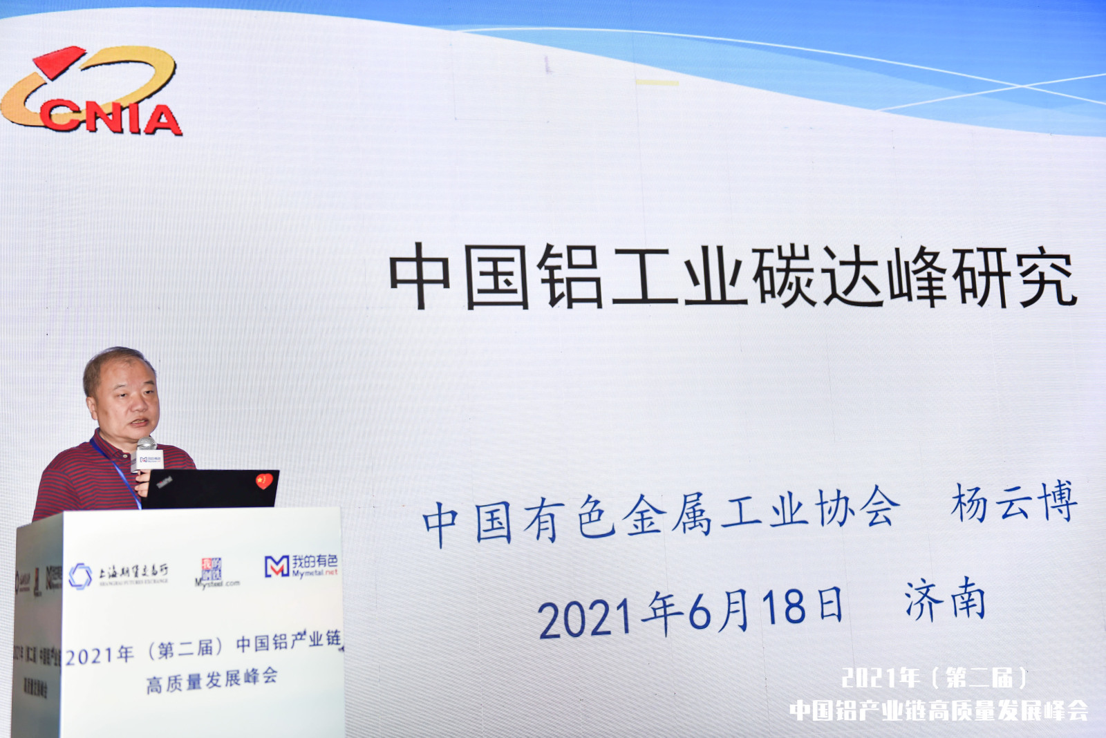 在本次大會(huì)上,中國有色金屬工業(yè)協(xié)會(huì)副秘書長(zhǎng)楊云博作了題為《中國鋁工業(yè)碳達(dá)峰研究》的主題演講。